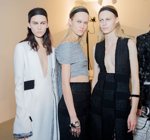 supermodel gigi hadid gives this striped topshop sweater a style boost in the january 2016 issue of british vogue. while a striped sweater and peacoat isn't a revolutionary combo, it is decidedly more modern when paired with a mini skirt. and might i add, this is a solid endorsement of block heeled pumps!